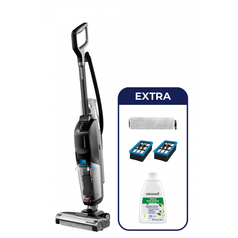 CrossWave HF2 Pro, szczotka obrotowa do podłóg twardych CrossWave (2), filtr odkurzacza (3), środek czyszczący do podłóg Natural Multi-Surface (236 ml), taca do przechowywania/czyszczenia, ilustrowany przewodnik użytkownika